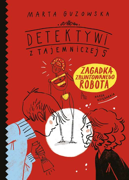 Czwarty tom serii detektywistycznej o młodych śledczych z Tajemniczej 5! Anka, Piotrek i Jaga są na wycieczce w Centrum Nauki Kopernik. Nie mogą się już doczekać przedstawienia słynnego teatru robotycznego – adaptacji bajki Stanisława Lema. Ku zdumieniu publiczności podczas spektaklu ginie jednak bez śladu mechaniczny aktor. Czy Anka i Piotrek rozwiążą tę dziwną sprawę i odnajdą porywacza? A może rację ma Jaga, która uparcie twierdzi, że robot się zbuntował… i uciekł? „Detektywi z Tajemniczej 5” zostali wymyśleni na wyraźne życzenie dzieci Marty Guzowskiej – dotąd autorki powieści kryminalnych dla dorosłych. Seria książek o śledztwach Anki i Piotrka łączy przygodową fabułę, elementy wiedzy o nauce i sztuce oraz interaktywną formę, gdyż każdy tom wymaga od czytelnika logicznego myślenia i rozwiązywania zagadek. Marta Guzowska planuje przeżyć dziewięć żyć – jak kot. Na razie ma na koncie trzy: jest archeolożką, pisarką i mamą. Za swoje powieści kryminalne i sensacyjne dla dorosłych otrzymała cztery nominacje do Nagrody Wielkiego Kalibru oraz nagrodę główną. „Detektywi z Tajemniczej 5” to jej pierwsza seria książek dla najmłodszych. Według samej autorki „dla dzieci pisze się o wiele trudniej, bo mają detektor ściemy”. Agata Raczyńska jedną ręką głaszcze swoje alpaki, a drugą rysuje. Całe szczęście, że ma dwie ręce i nie musi wybierać… Spośród zilustrowanych przez nią książek z największym uznaniem spotkały się dotąd Gry i zabawy z dawnych lat (2016). Zdobyły wyróżnienie w konkursie PTWK Najpiękniejsze Książki Roku, nominację do Pióra Fredry oraz nominację w konkursie Książka Roku Polskiej Sekcji IBBY.