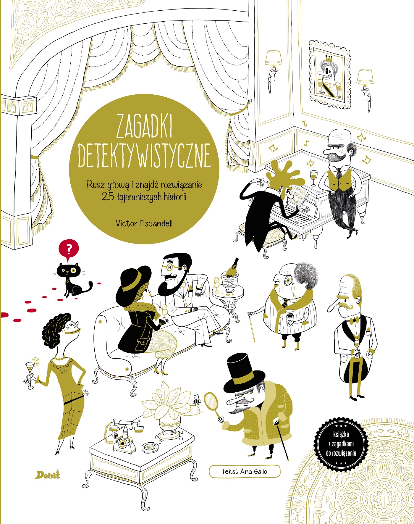 W tej niezwykłej książce czeka na rozwiązanie 25 zagadek o różnym stopniu trudności. Jedne wymagają logicznego myślenia, inne zachęcają do ruszenia wyobraźnią, a wszystkie gwarantują dobrą zabawę i gimnastykę szarych komórek nie tylko dla młodego czytelnika. Każda zagadka to osobna historyjka z kilkorgiem bohaterów i interesującą tajemnicą. Która z postaci okaże się winowajcą? Jak to wykryć? Można kolejne zadania przechodzić samemu, a można też zaprosić do zabawy znajomych lub całą rodzinę. W książce podpowiedziano, jak urządzić detektywistyczny konkurs – ze sprawiedliwą punktacją. Smaczku przydają zagadkom komiksowe sytuacje, zabawne rysunki i akcja osadzona w najróżniejszych miejscach: czy to na dworze angielskiego lorda, czy na rybackim statku, w więzieniu albo wśród włoskich mafiosów…