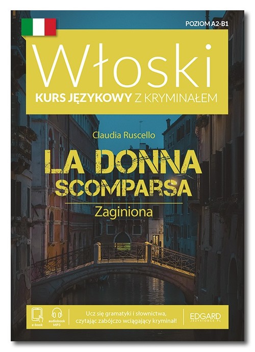 "Jeśli na myśl o wkuwaniu włoskiego słownictwa i regułek gramatycznych zaczynasz kompulsywnie ziewać, kryminałem z samouczkiem La donna scomparsa to idealne rozwiązanie! W spokojnym włoskim miasteczku znika bez śladu młoda kobieta. Czyżby za jej zaginięciem stał któryś z mieszkańców? Do akcji wkraczają niezdarny komendant miejscowej policji oraz piękna detektyw. Włoski kurs językowy z kryminałem to niekonwencjonalny kurs skierowany do młodzieży i dorosłych, którzy znają podstawy języka włoskiego (poziom A2-B1). Praca z kursem pozwala poznać współczesne włoskie słownictwo oraz konstrukcje gramatyczne w kontekście, czyli w sposób najbardziej naturalny i sprzyjający zapamiętywaniu. Audiobook zinterpretowany przez profesjonalnego włoskiego lektora uczy poprawnej wymowy, pomaga w wypracowaniu prawidłowego akcentu oraz rozwija umiejętność rozumienia ze słuchu. Włoski kurs językowy z kryminałem to: trzymająca w napięciu akcja tłumaczenia nowych słówek i zwrotów na marginesach – sprawdzasz znaczenie, nie odrywając się od książki solidne podstawy gramatyki, którą poznajesz stopniowo i w małych porcjach ponad 130 ćwiczeń, dzięki którym utrwalasz nowy materiał W pakiecie: książka (232 str) + audiobook MP3 do pobrania (1 godz. 54 min) czytany przez native speakera + GRATIS e-book mp3. "