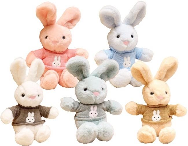 Każdy detal tego pluszaka został przemyślany tak, aby cieszyć oko i pobudzać zmysły. Mięciutki, dzianinowy sweterek z emblematem innego zajączka dodaje mu niepowtarzalnego charakteru i sprawia, że zabawka prezentuje się niezwykle stylowo na półce w pokoju dziecięcym. Dzięki delikatnej, pastelowej kolorystyce króliczek wpisuje się w najnowsze trendy wnętrzarskie, będąc nie tylko ulubioną przytulanką, ale i piękną dekoracją.