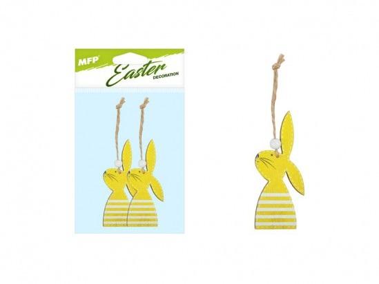 Zające zawieszka drewniana żółta 11cm 2 szt