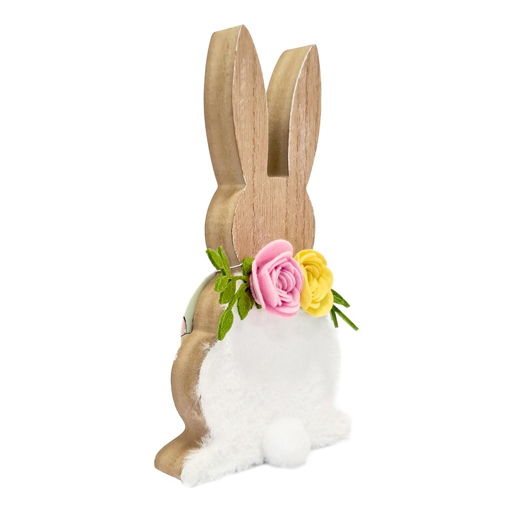 Zajączek drewniany z białym futrem