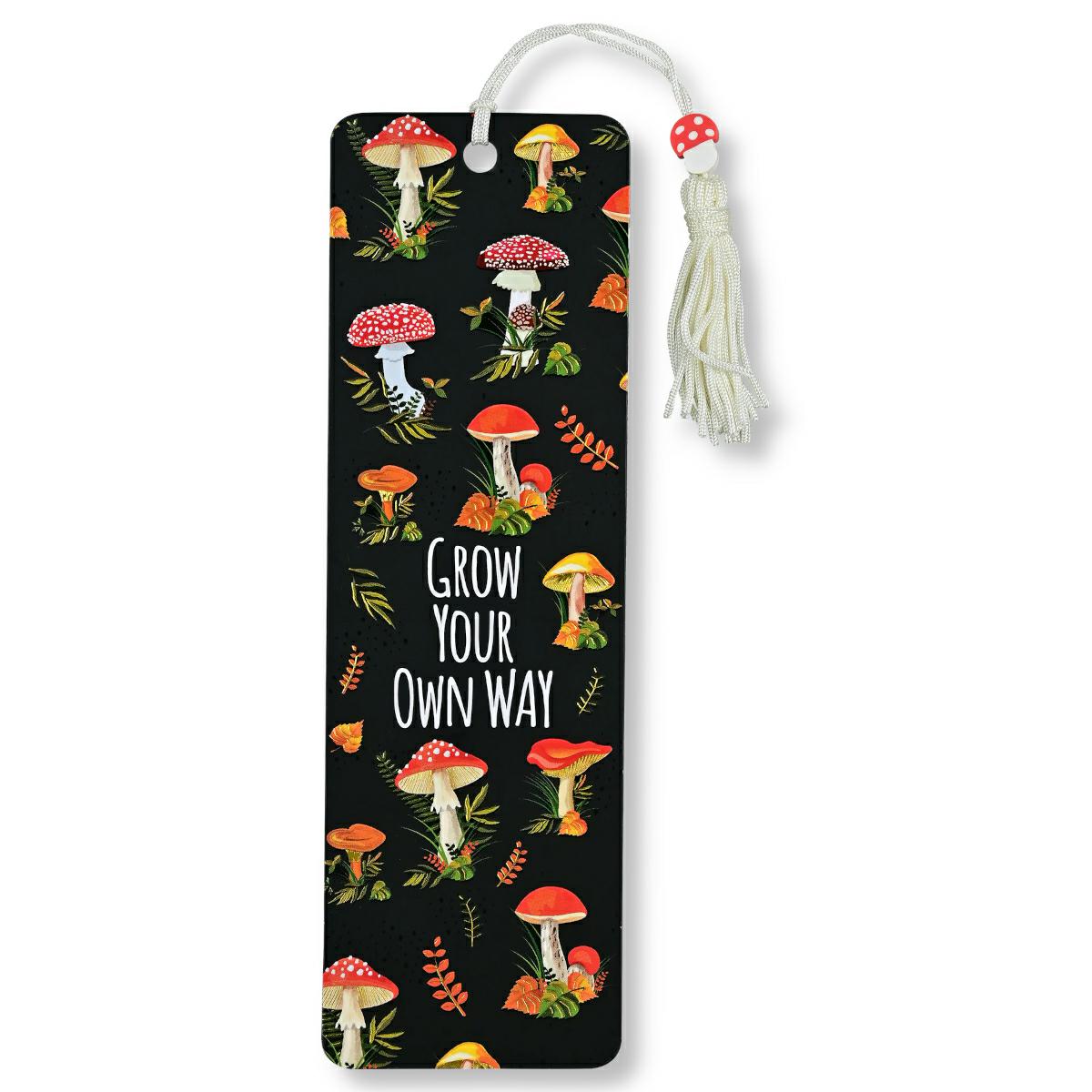 Zakładka do książki firmy Peter Pauper Press - Grzyby (Mushrooms). Motto: "Rozwijaj się na swój własny sposób." Zakładka ma dopasowaną kolorystycznie wstążkę z frędzlem oraz koralik. Barwne, trwałe, zabawne lub motywujące nadruki sprawią, że czytanie będzie jeszcze ciekawsze. Każda zakładka jest drukowana na trwałym, powlekanym kartonie i pakowana w przezroczystą osłonkę. Uniwersalny wymiar 6,4 x 18,1 cm.
