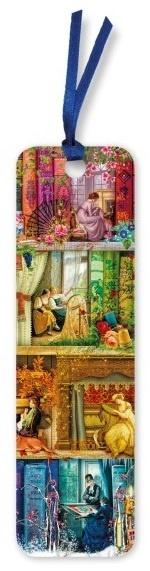 Pozłacana, papierowa zakładka do książki z ozdobną wstążką.