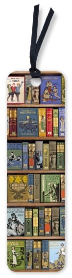 Pozłacana, papierowa zakładka do książki z ozdobną wstążką.