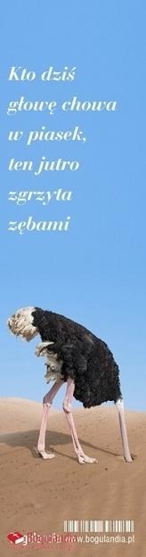 Zakładka do książki tekst: Kto dziś głowę chowa w piasek, ten jutro zgrzyta zębami