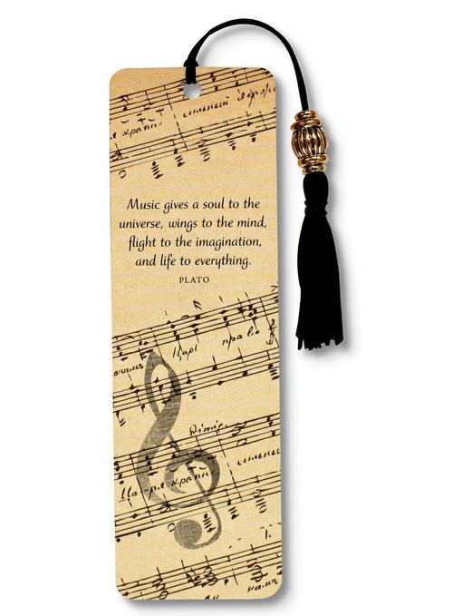 Zakładka do książki firmy Peter Pauper Press - Muzyka (Music). Cytat ``Music gives a soul to the universe, wings to the wind, flight to the imagination, and life to everything`` (Muzyka daje duszę wszechświatowi, skrzydła umysłowi, lot wyobraźni, a wszystkiemu życie) należy do Platona. Zakładka ma dopasowaną kolorystycznie wstążkę z frędzlem oraz koralik. Barwne, trwałe, zabawne lub motywujące nadruki sprawią, że czytanie będzie jeszcze ciekawsze. Każda zakładka jest drukowana na trwałym, powlekanym kartonie i pakowana w przezroczystą osłonkę. Uniwersalny wymiar 6,4 x 18,1 cm.