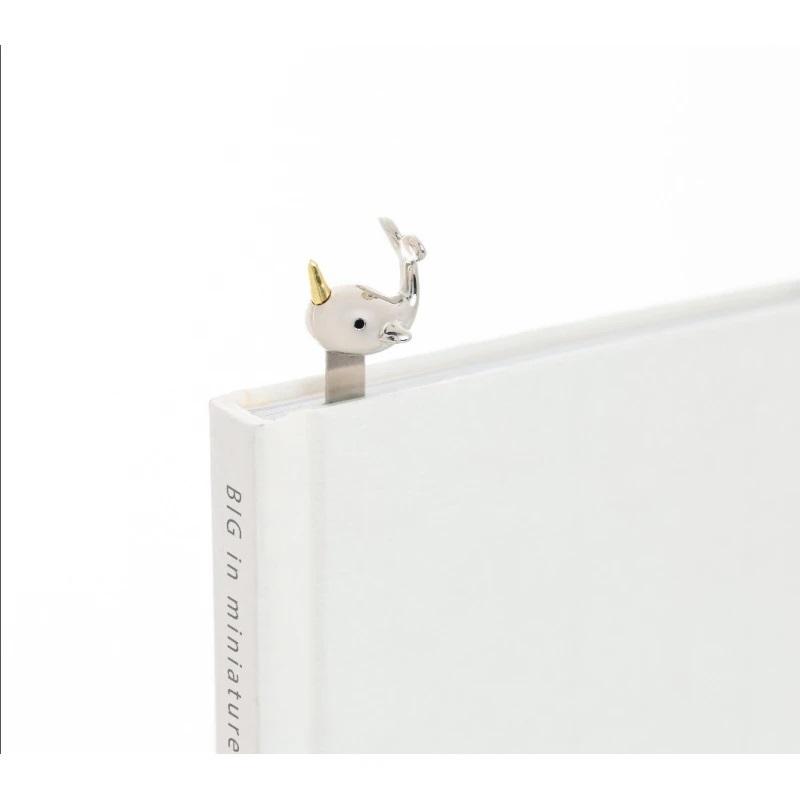 Srebrny ssak ze złotym rogiem wpłynie na jakość czytania, a konkretniej nie dopuści do pominięcia którejkolwiek strony po powrocie do lektury. Nieważne czy czytasz przygody Moby Dick'a, podręcznik do nurkowania czy może wziąłeś się za tytuł bynajmniej nie związany z tematyką morską, zakładka do książki narwal spełni swoją funkcję.