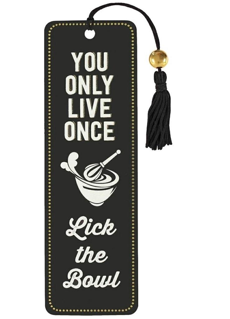 Zakładka do książki firmy Peter Pauper Press - Raz się żyje (Cooking You Only Live Once). Na odwrocie zakładki jet ściąga zamienników kulnarnych. Zakładka ma dopasowaną kolorystycznie wstążkę z frędzlem oraz koralik. Barwne, trwałe, zabawne lub motywujące nadruki sprawią, że czytanie będzie jeszcze ciekawsze. Każda zakładka jest drukowana na trwałym, powlekanym kartonie i pakowana w przezroczystą osłonkę. Uniwersalny wymiar 6,4 x 18,1 cm.