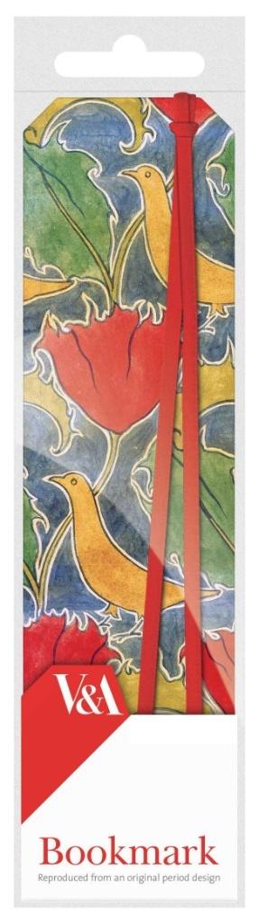 Tekturowa zakładka do książki z kolorową wstążką. Zawiera prace z ruchu rzemiosła artystycznego, w tym Williama Morrisa i Charlesa Voyseya. Piękny wzór z archiwów muzeum Wiktorii i Alberta.