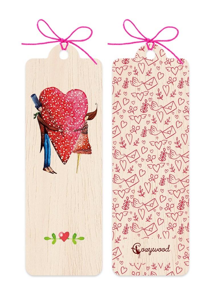 Opakowanie Zakładka drewniana Para serce