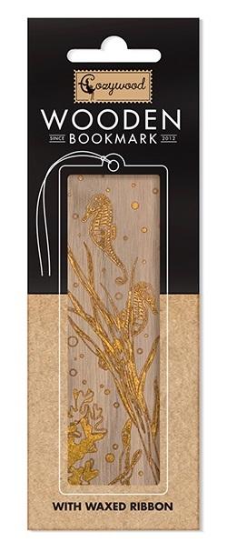 Zakładka drewniana złota Koniki morskie