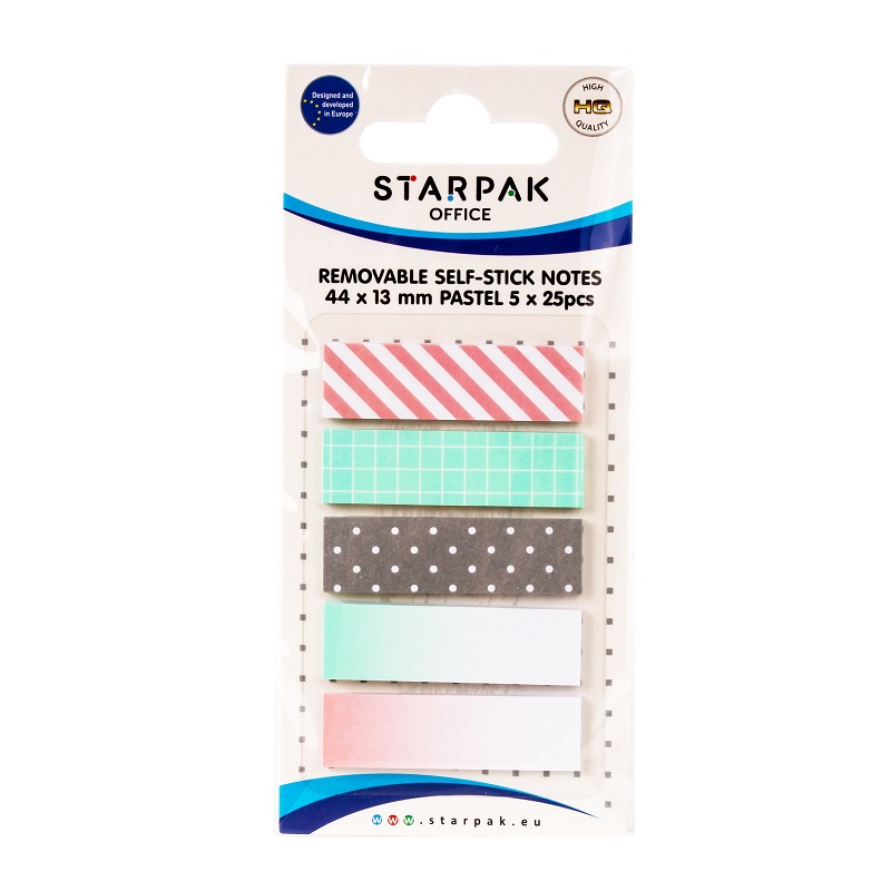 5 x 25 sztuk zakładek indeksujących w różnych pastelowych kolorach i wzorach.