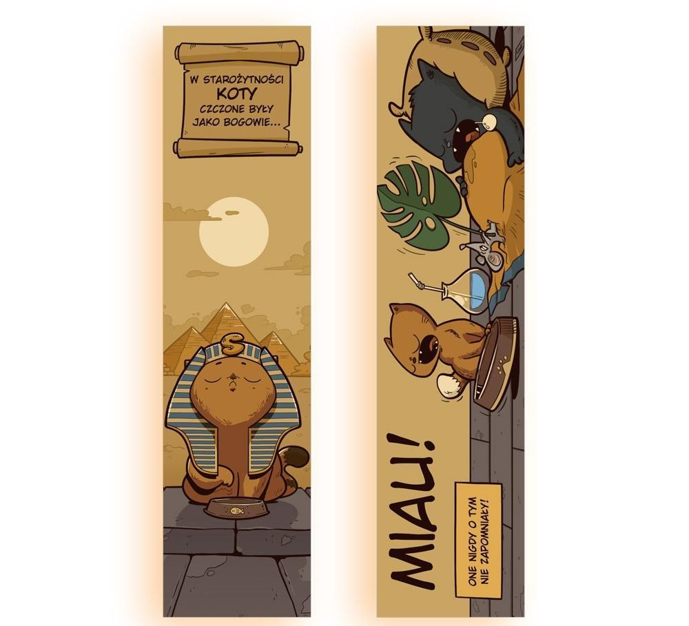 Mruczące bóstwo znowu przerywa Ci lekturę i domaga się uwagi, czci lub saszety? Załóż książkę zakładką "Bogowie" i czyń swoją powinność. Jeśli przyjdzie Ci do głowy szalona myśl, by zignorować kocie wołanie o atencję, miej się na baczności już w starożytności wiedziano, że mruczki lepiej obłaskawiać niż zmagać się z ich gniewem. Karton ozdobny perłowy 300g, sztywny, metaliczno-srebrny połysk Wymiary: 50x200mm