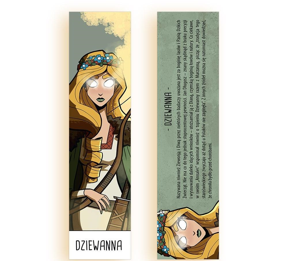 Bogini lasów, łowów i dzikich zwierząt może zawitać w skromne progi każdego mola książkowego. Karton ozdobny perłowy 300g, sztywny, metaliczno-srebrny połysk Wymiary: 50x200mm