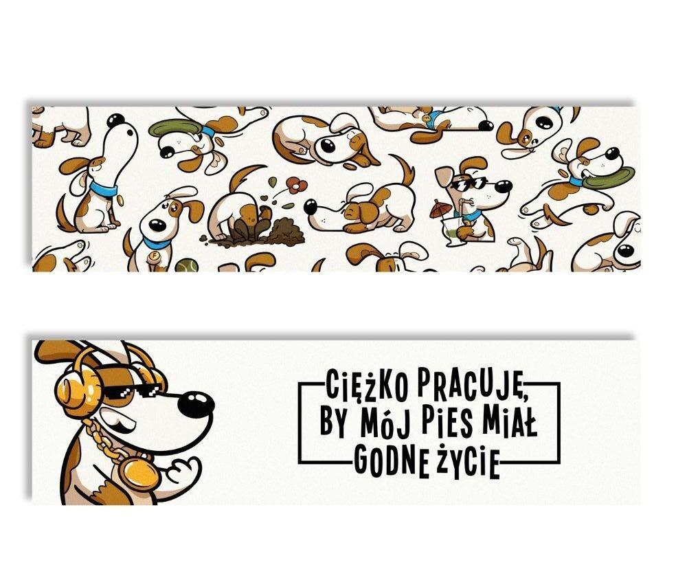 Ciężko pracujesz, by Twojemu psiakowi niczego nie zabrakło? Dobrze wiemy, jak to jest i dlatego w naszej ofercie nie mogło zabraknąć tej zakładki! Materiał: Kreda mat 350g, sztywny, wygładzony, o aksamitnej powierzchni, najwyższy poziom bieli. Wymiary: 50x200mm
