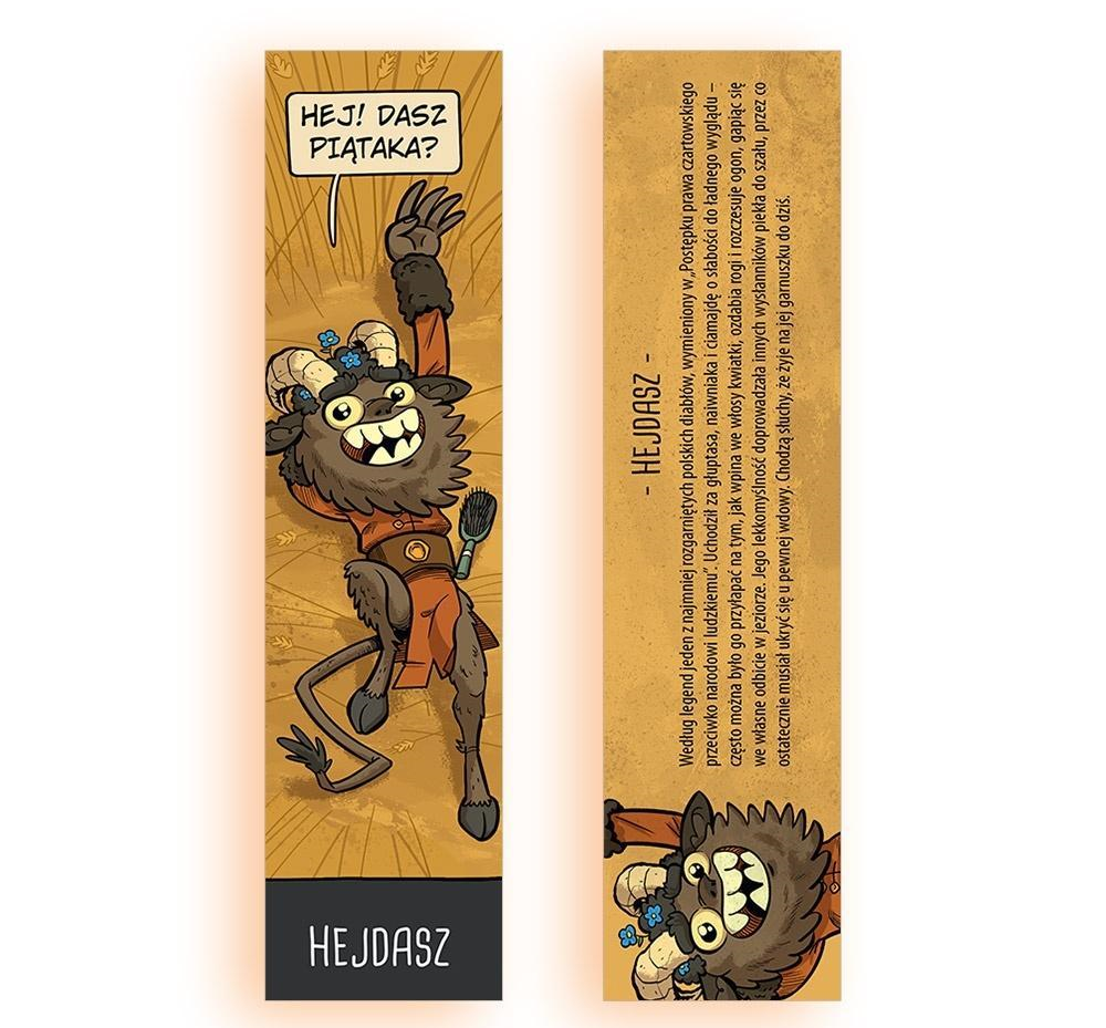 Zakładka do książek, dla zainteresowanych diabłami słowiańskimi i lokalnymi wierzeniami. Karton ozdobny perłowy 300g, sztywny, metaliczno-srebrny połysk Wymiary: 50x200mm