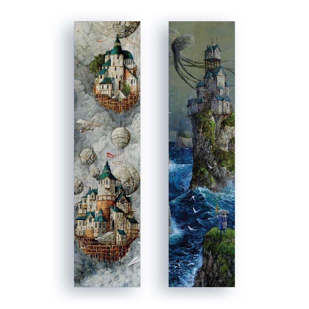 Zakładka do książek z obrazami Rocha Urbaniaka! Karton ozdobny perłowy 300g, sztywny, metaliczno-srebrny połysk Wymiary: 50x200mm