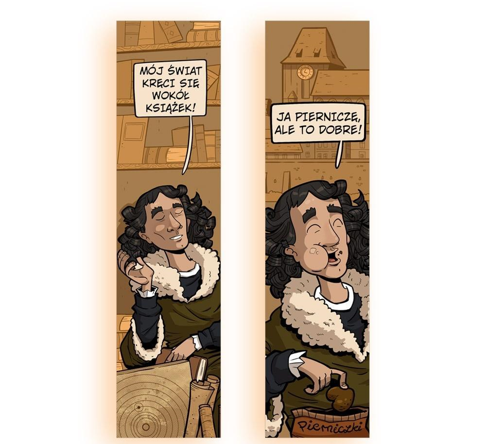 Heliocentryczna, a może raczej książkocentryczna idea kopernikańska nie jest Ci obca? Twój świat również kręci się wokół książek? Chyba mamy zakładkę w sam raz dla Ciebie. Nie pierniczymy, to prawdziwie wyborny gadżet dla każdego mola książkowego! Karton ozdobny perłowy 300g, sztywny, metaliczno-srebrny połysk Wymiary: 50x200mm