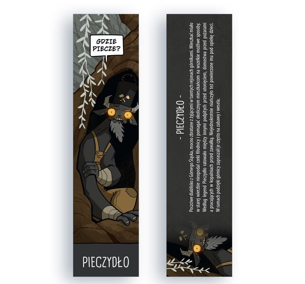 Zakładka do książek, dla zainteresowanych diabłami słowiańskimi i lokalnymi wierzeniami Karton ozdobny perłowy 300g, sztywny, metaliczno-srebrny połysk Wymiary: 50x200mm