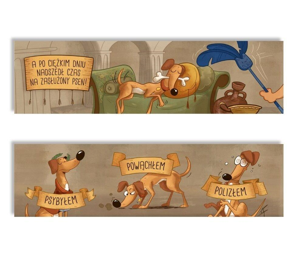 Zakładka do książek dla wszystkich, którzy kochają psy, pieski i pieseły! Psybyłem. Powąchłem. Polizłem. Czyż nie jest to idealny dzień z życia psa? Karton ozdobny perłowy 300g, sztywny, metaliczno-srebrny połysk Wymiary: 50x200mm