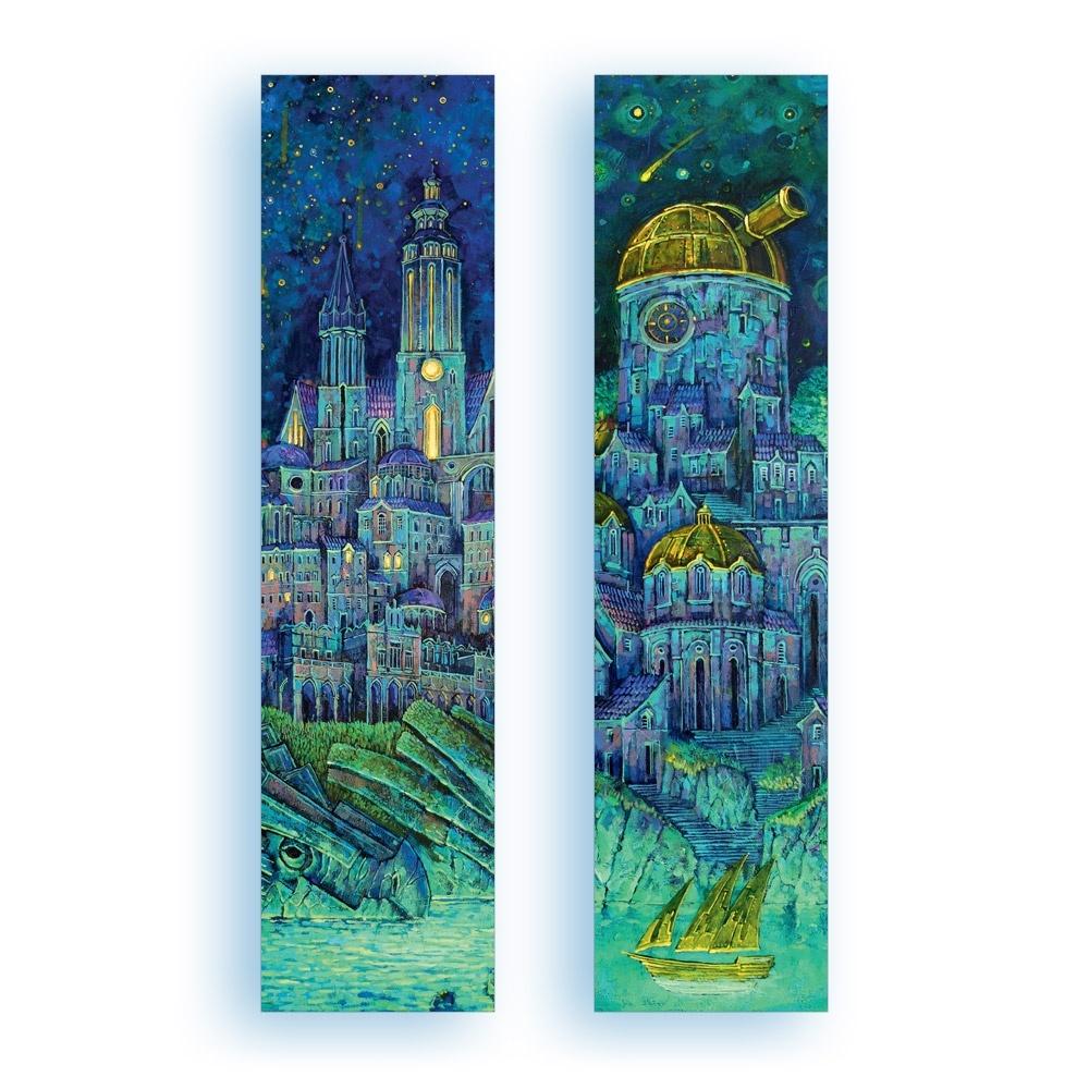 Obserwuj niebo dzięki wyjątkowej zakładce z obrazami Rocha Urbaniaka! Karton ozdobny perłowy 300g, sztywny, metaliczno-srebrny połysk Wymiary: 50x200mm
