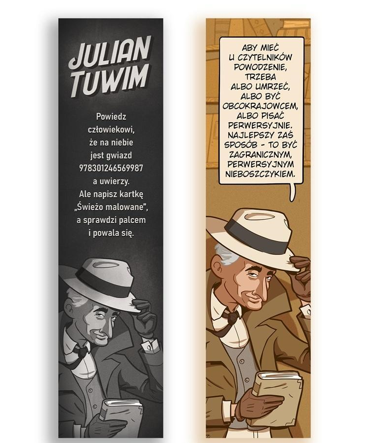 Zanurz się w świecie literatury z naszym unikalną zakładką z cytatami od jednego z największych polskich poetów, Juliana Tuwima. Karton ozdobny perłowy 300g, sztywny, metaliczno-srebrny połysk Wymiary: 50x200mm