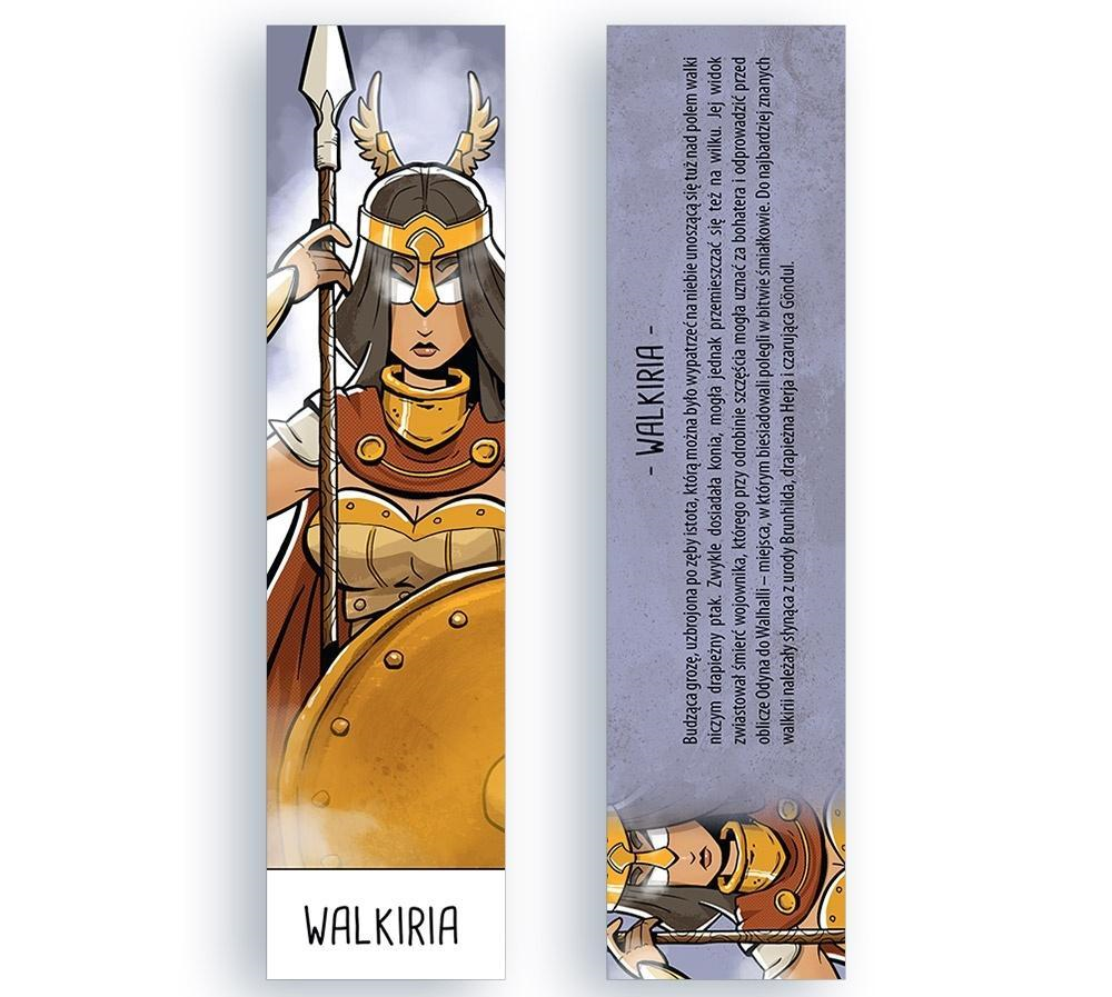 Widok Walkirii zwykle zwiastował rychłą śmierć wojownika, ale Ty nie masz się czego obawiać. Choć na co dzień pewnie toczysz różnego rodzaju boje, nasza zakładka z Walkirią będzie raczej zwiastunem jeszcze przyjemniejszej lektury. Możesz używać jej nie tylko podczas czytania książek o wielkich bitwach. Karton ozdobny perłowy 300g, sztywny, metaliczno-srebrny połysk Wymiary: 50x200mm
