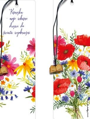 Zakładka do książki z sentencją. Dwustronna, ozdobiona derwnianą zawieszką w kształcie książki.