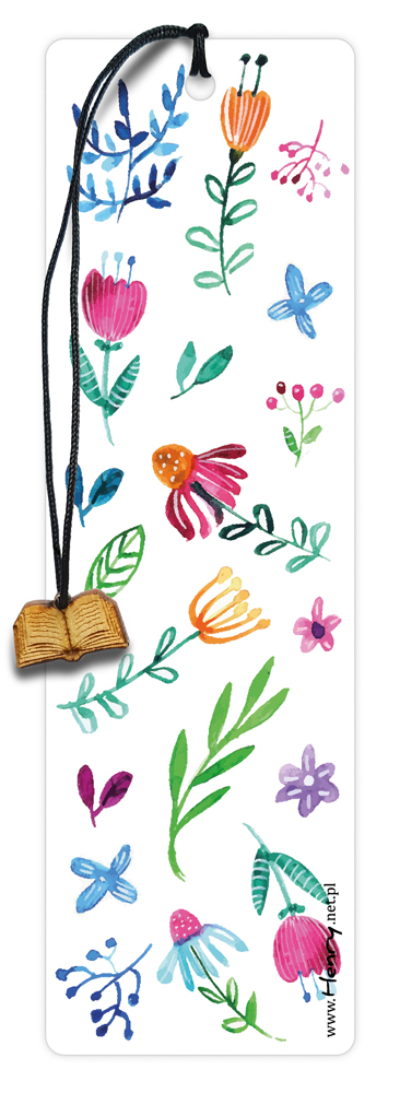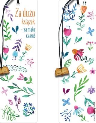 Zakładka do książki z sentencją. Dwustronna, ozdobiona derwnianą zawieszką w kształcie książki.