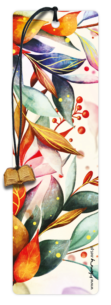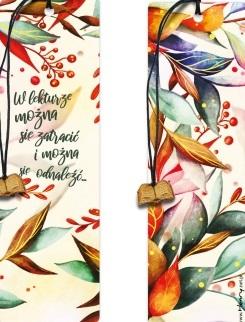 Zakładka do książki z sentencją. Dwustronna, ozdobiona derwnianą zawieszką w kształcie książki.