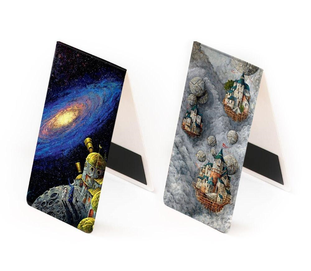 Dwa wyjątkowe obrazy malarza Rocha Urbaniaka! Komandor Lem i Witajcie w Chmurogórzu. Idealne dla kochających science fiction i fantasy! Zaokrąglone rogi, papier kreda 350 g, folia zabezpieczająca błysk, folia magnetyczna na kawałku zakładki