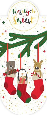 Świąteczna zakładka magnetyczna do książki, polecana do książkowych prezentów. Zapakowana w woreczek foliowy z euro zawieszką.