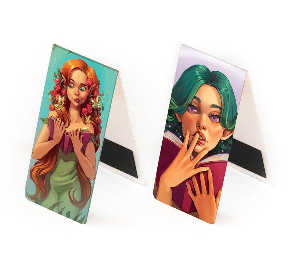 Ta magnetyczna zakładka z uroczymi elfkami zanurzonymi w świecie książek nie tylko pięknie wygląda, ale także pewnie trzyma strony. Idealna dla miłośników magii i literatury. Niech te magiczne stworzenia towarzyszą Wam w każdej literackiej podróży! Zaokrąglone rogi, papier kreda 350 g, folia zabezpieczająca błysk, folia magnetyczna na kawałku zakładki