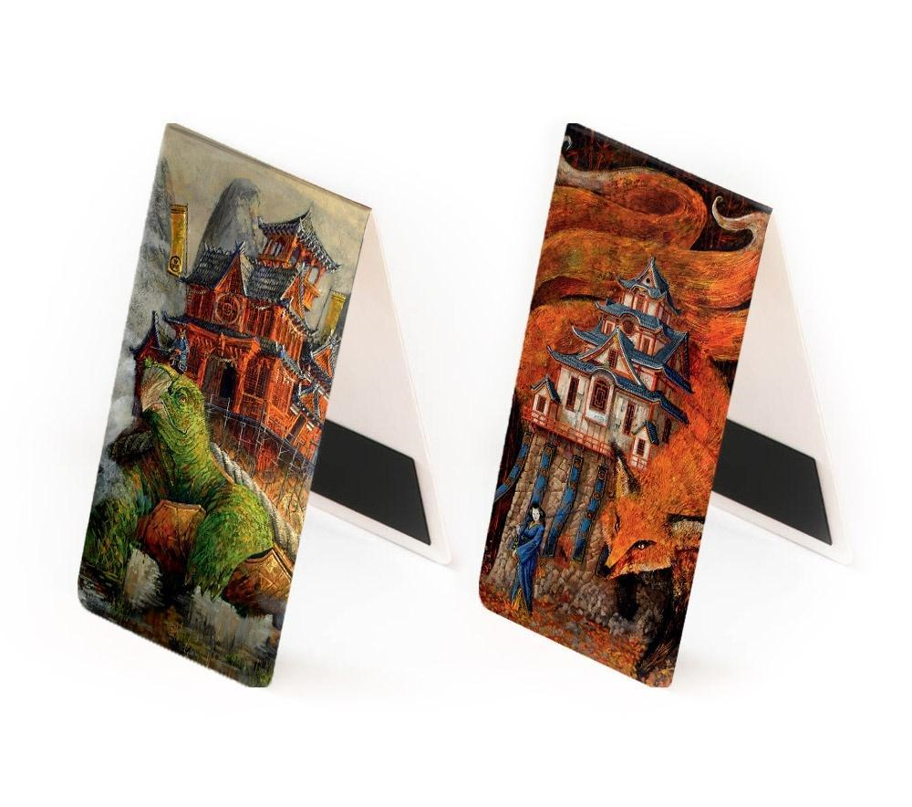Piękne obrazy Rocha Urbaniaka, inspirowane japońskimi legendami i popkulturą, teraz także na zakładkach magnetycznych. Poznajcie potężnego Kaiju kroczącego z fortem oraz tajemniczą Kitsune - magiczną i pełną sekretów. Zaokrąglone rogi, papier kreda 350 g, folia zabezpieczająca błysk, folia magnetyczna na kawałku zakładki