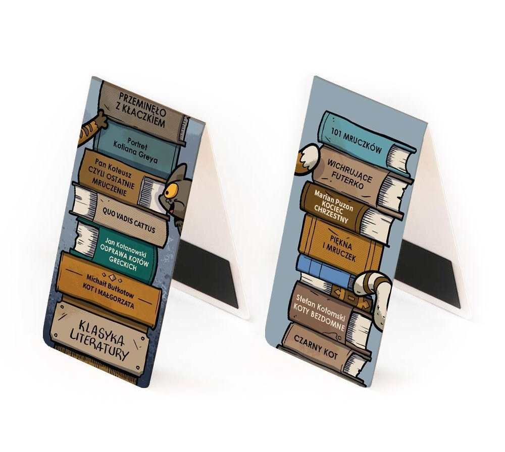 Zanurz się w świat literackich przygód z naszą zakładką magnetyczną 'Kocie Bestsellery'! Idealna dla wszystkich kochających czytać i przytulać koty! Zaokrąglone rogi, papier kreda 350 g, folia zabezpieczająca błysk, folia magnetyczna na kawałku zakładki