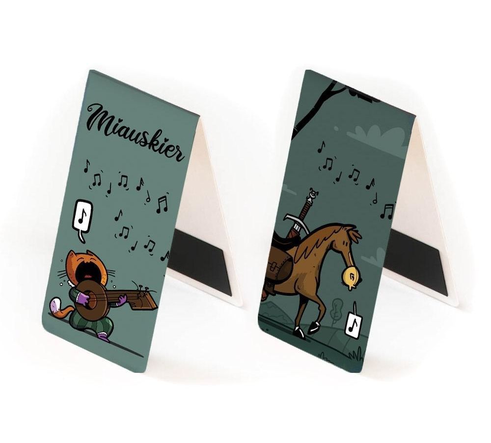 Grosza daj Miauskierowi i wyruszcie razem na fantastyczną przygodę! Zaokrąglone rogi, papier kreda 350 g, folia zabezpieczająca błysk, folia magnetyczna na kawałku zakładki