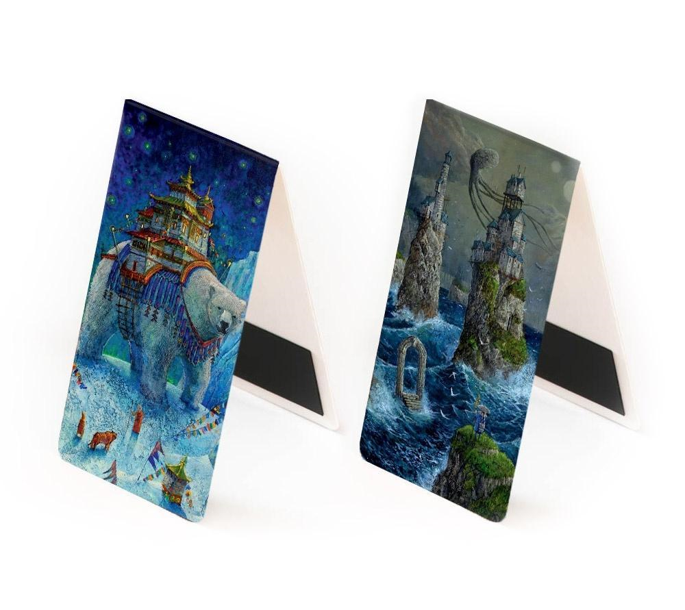 Zakładka magnetyczna z dwoma obrazami wybitnego malarza Rocha Urbaniaka! Poznajcie Nagarkot oraz Inne Brzegi. Zaokrąglone rogi, papier kreda 350 g, folia zabezpieczająca błysk, folia magnetyczna na kawałku zakładki