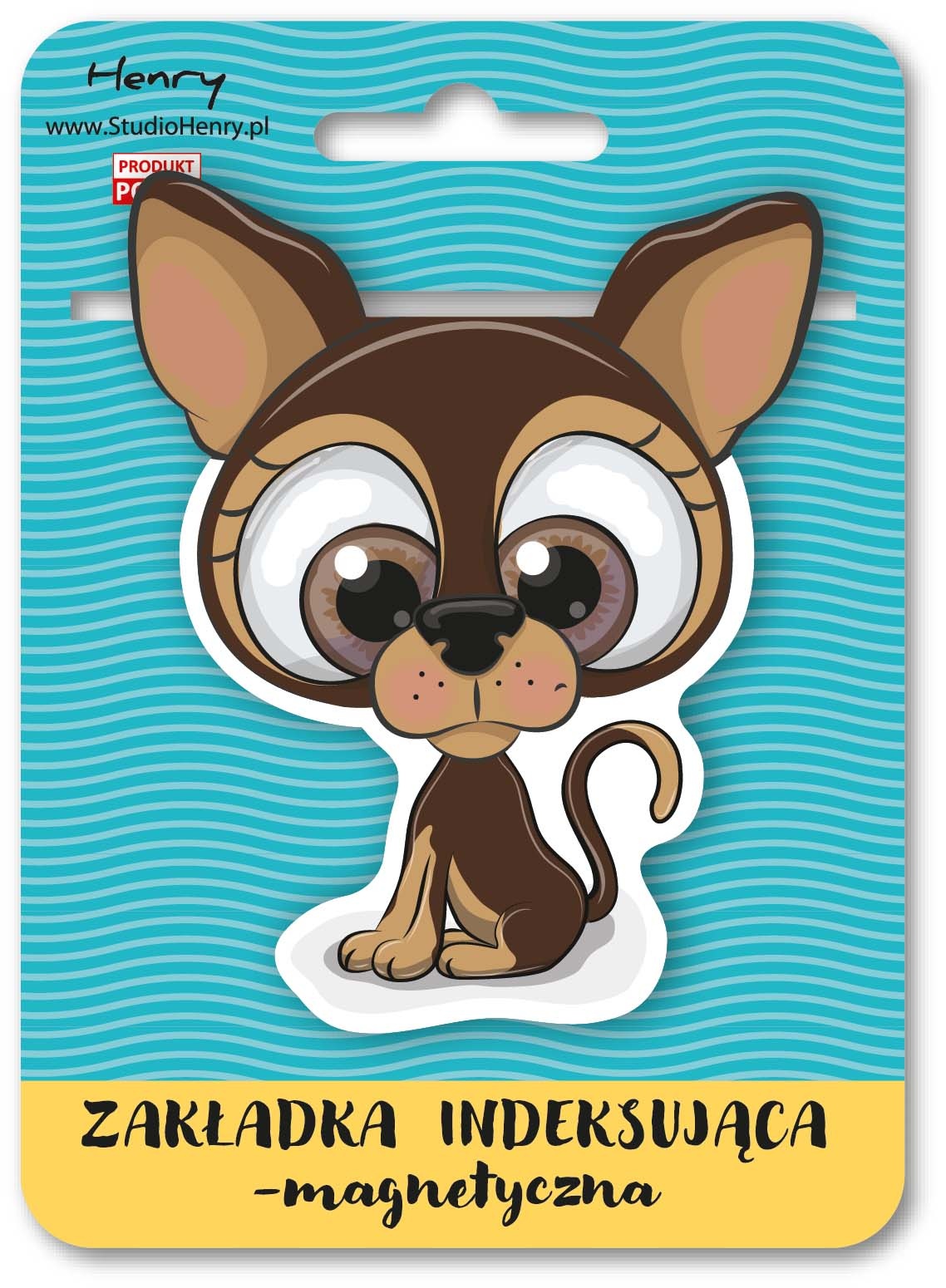 Magnetyczna zakładka do książki na blistrze zapakowana w woreczek foliowy z euro zawieszką.