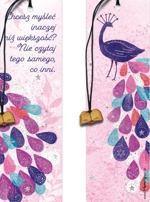 Zakładka do książki z sentencją. Dwustronna, ozdobiona derwnianą zawieszką w kształcie książki.