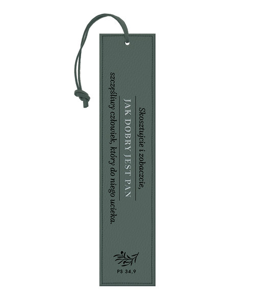 Ta elegancka zakładka do książki wykonana jest z wysokiej jakości eko skóry.Jest to doskonałe rozwiązanie dla wszystkich miłośników książek, którzy cenią zarówno styl, jak i duchowe przesłanie. Głównym elementem tej zakładki jest wygrawerowany werset biblijny, który stanowi inspirację i przypomina o duchowym wymiarze czytania.Zakładka może być nie tylko praktycznym dodatkiem, ale również wartościowym towarzyszem w Twojej codziennej lekturze. Już nie musisz martwić się o zgubienie strony, którą właśnie przeczytałeś. Po zakończeniu czytania możesz wygodnie zamknąć książkę, a zakładka utrzyma Twoje miejsce, czekając na Ciebie, gdy znów będziesz chciał kontynuować lekturę. Teskt na zakładce: Skosztujcie i zobaczcie, jak dobry jest Pan, szczęśliwy człowiek, który się do Niego ucieka. Ps 34, 9 Rozmiar: 18x4 cm