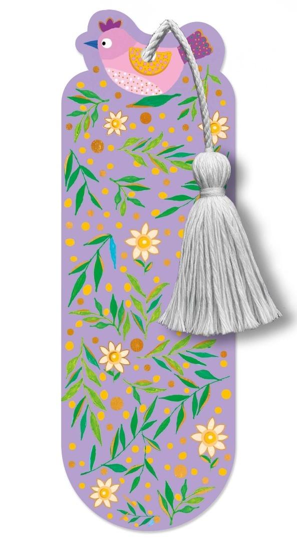 Złocona zakładka wykonana z grubego kartonu ozdobiona kolorowym chwostem.