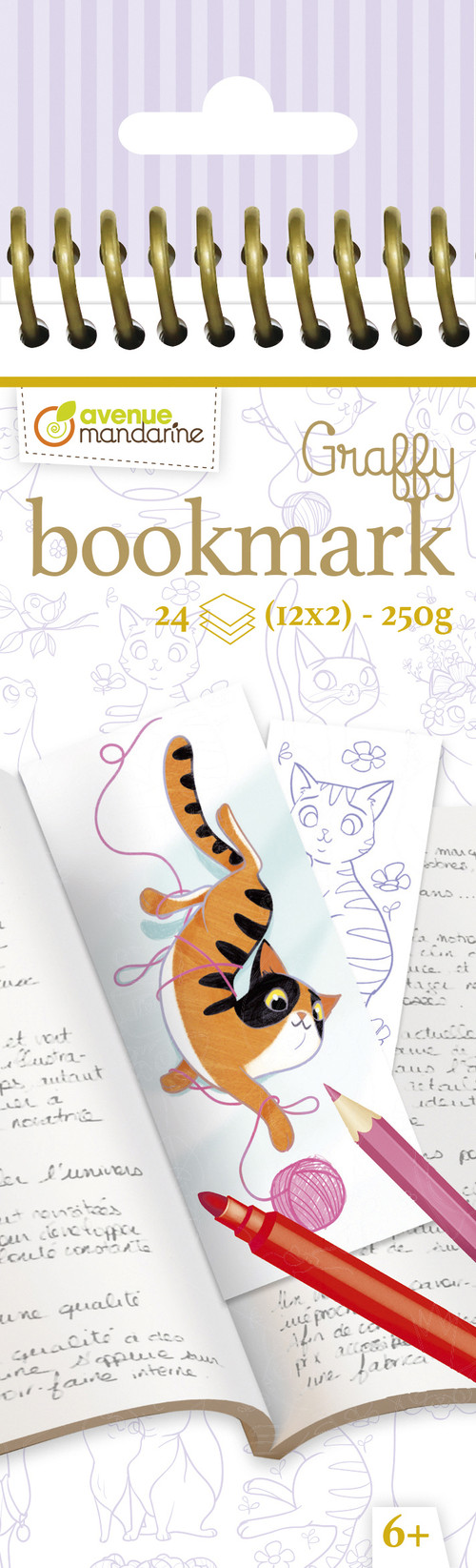 24  zakładek do samodzielnego udekorowania (kredkami, flamastrami, akwarelą, brokatem…)Jednostronny nadruk, papier 250g - 12 motywów po 2 szt każdy. Zakładki z perforacją umożliwiającą ich oderwanie.