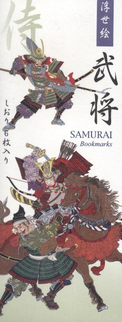 Elegancki japoński zestaw zakładek premium z piękną, artystyczną ilustracją. Zestaw zawiera 6 różnych zakładek do książki, inspirowanych klasycznym japońskim drzeworytem ukiyo-e. Przedstawiony wzór ukazuje dynamiczne sceny z samurajami. Górna część przedstawia wojownika w bogatej zbroi z halabardą, dolna dramatyczną walkę konnego samuraja z przeciwnikiem. Smukły format, subtelny jasny pasek z eleganckimi japońskimi napisami. Zestaw w ochronnej kopercie.