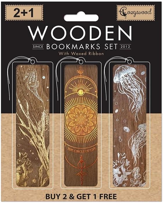 Opakowanie Zakładki drewniane do książki 2+1 Złote