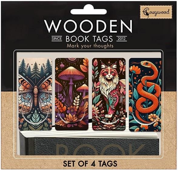 Zestaw 4 przepięknie ilustrowanych zakładek do książek, wykonanych z drewna. Znaczniki są w 100% biodegradowalne, wykonane przy użyciu minimalnego nakładu energii, gazu i wody. Wyprodukowane na Litwie.
