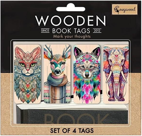 Opakowanie Zakładki drewniane do książki Zwierzęta mandale