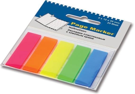 Zakładki indeksujące do zaznaczania stron, segregowania informacji. Można je wielokrotnie odklejać i przyklejać nie niszcząc powierzchni, 45x15mm 5 kolorów błyszczących (5x25 fiszek).