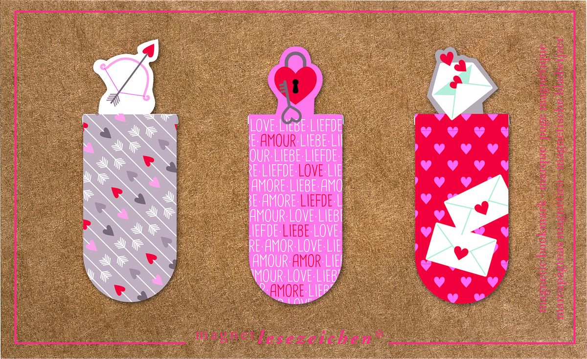 Zakładki magnetyczne - Miłość 2. Pięknie ilustrowane zakładki z wystającymi, ozdobnymi elementami. Idealne do zaznaczania ostatnio czytanych lub ulubionych fragmentów książek. Doskonale sprawdzają się w indeksowaniu notatek, dokumentów w biurze, w szkole i w domu. Każdy zestaw zawiera 3 zakładki o różnych wzorach, skoordynowanych tematycznie. Skompletuj swoją własną kolekcję z zakładkami: Szczęście, Miłość.