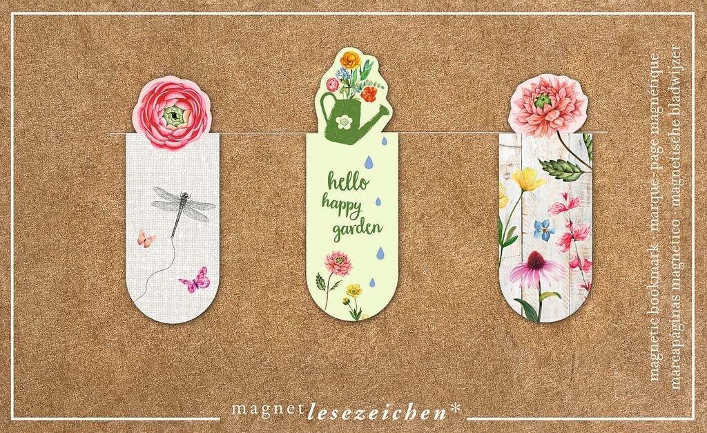 Zakładki magnetyczne - Ogród 2. Pięknie ilustrowane zakładki z wystającymi, ozdobnymi elementami. Idealne do zaznaczania ostatnio czytanych lub ulubionych fragmentów książek. Doskonale sprawdzają się w indeksowaniu notatek, dokumentów w biurze, w szkole i w domu. Każdy zestaw zawiera 3 zakładki o różnych wzorach. Trzy zakładki magnetyczne w zestawie są tematycznie skoordynowane. Skomponuj swoja własną kolekcję z zakładkami: Ogród.